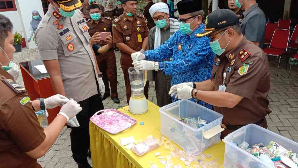 Beberapa barang bukti seperti narkoba jenis sabu-sabu seberat 25,98 gram, obat daftar G dan Daftar W sebanyak 41.789 butir, HP, senjata tajam dan beberapa barang bukti lainnya turut dihanguskan dengan cara di bakar dan dipotong dan dihancurkan menggunakan blender seperti barang bukti berupa sabu-sabu dan obat-obatan.