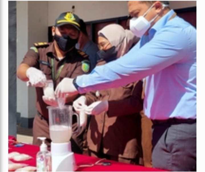 Pemusnahan dilakukan di halaman Kejari Banjarmasin disaksikan Kepala Kejaksaan Negeri Banjarmasin Tjakra Suyana Eka Putra SH, pejabat PN Banjarmasin, serta petugas BPOM.