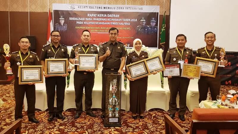 Sampit,BARITO – Piagam penghargaian atas Kinerja Kejaksaan Negeri Kotim tahun 2018, dalam bidang Tindak Pidana Khusus, Inteljen,Perdata dan TUN serta bidang Tindak Pidana Umum menjadi juara terbaik se-Kalteng, sedang bidang Pembinaan berhasil menjadi juara II se-Kalteng yang disampaikan dalam rapat kerja daerah Kejaksaan Tinggi Kalteng, Kamis (20/12) di Palangka Raya.