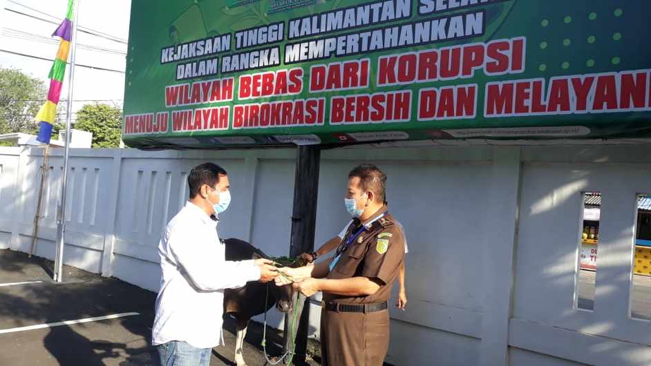 Sapi qurban langsung diserahkan Kajati  Kalsel  Arie Arifin SH MH yang diwakili Asisten Pembinaan Widagdo SH. Sedangkan yang menerima adalah Ketua PWI Kalsel Zaenal Helmi.