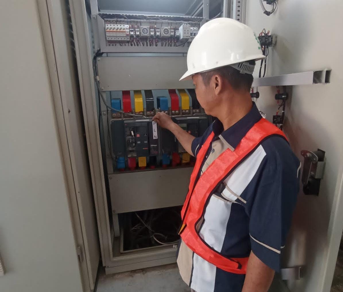 Petugas melakukan pengecekan kondisi MCCB PAM Bandarmasih.