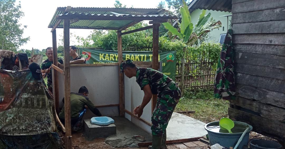 “Keluarga Atang yang terdiri dari 2 buah rumah beserta anaknya hanya memiliki jamban yang tidak layak, maka dari itulah melalui program Karya Bakti TNI di buatkan WC yang layak dan standar,”terang Peltu Syahman.
