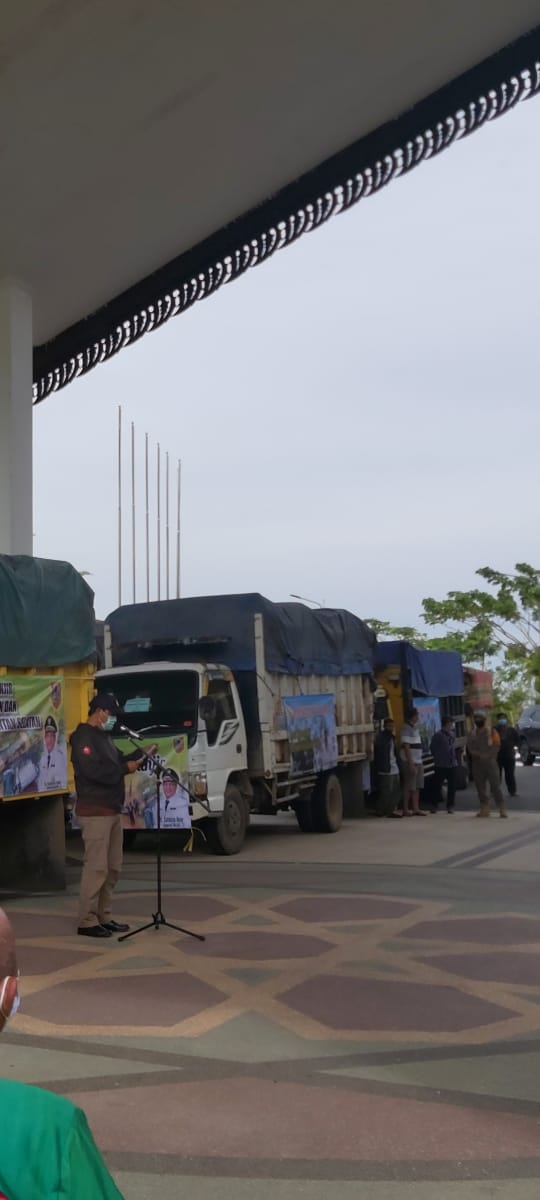 Sebelum melepas keberangkatan armada truk logistik dari Kementan RI, Gubernur Kalsel, H Sahbirin Noor menyampaikan ucapan terimakasih atas bantuan berbagai pihak