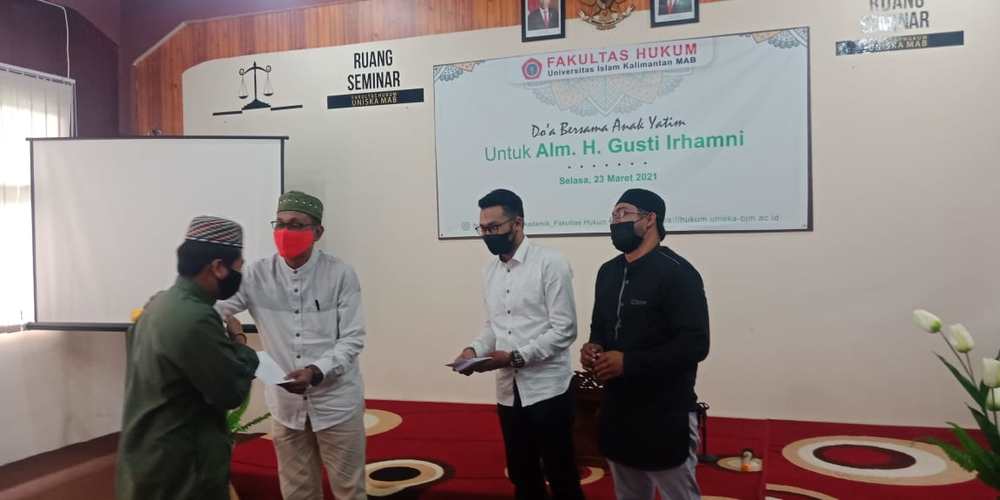 Banjarmasin, BARITO – Doa bersama Anak Yatim untuk almarhum Ketua Yayasan Uniska MAB Dr Ir H Gusti Irhamni digelar Fakultas Hukum Universitas Islam Kalimantan (Uniska) Muhammad Arsyad Al Banjari (MAB), Selasa (23/3/2021).