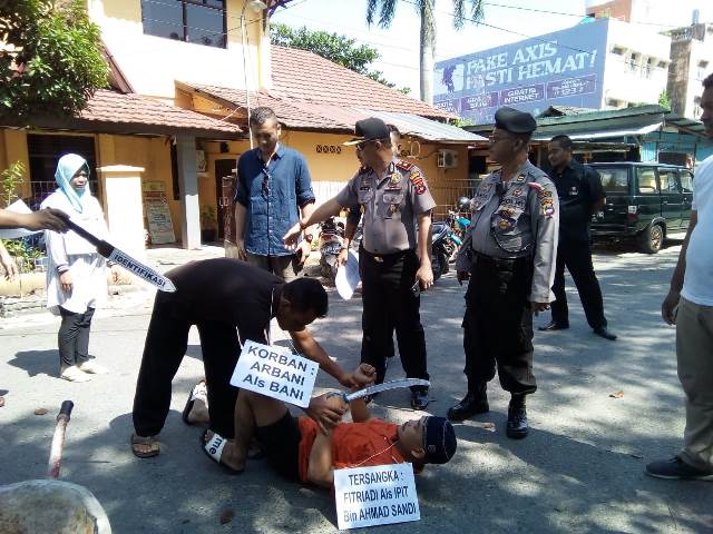 Pembunuhan dilakukan sebanyak 24 adegan dan pelaku anak dari Ahmad Sandi alias Anang Susu itu menebas sebanyak empat kali hingga korban tewas di TKP. Rekonstruksi itu dipimpin langsung Kapolsek Bantim Kompol HM Uskiansyah dan tersangka didampingi pengacaranya Angga D Saputra SH & Asosiated