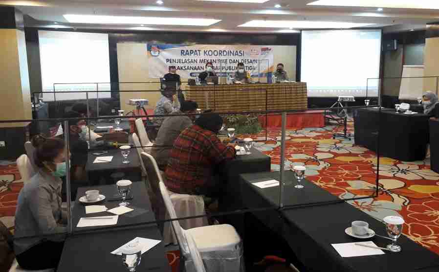 Banjarmasin, BARITO – Komisi Pemilihan Umum (KPU) Kalimantan Selatan (Kalsel) terus melaksanakan persiapan debat publik ketiga yang akan dilaksanakan, Sabtu (28/11/2020) malam, Rapat Koordinasi Penjelasan Mekanisme dan Desain Pelaksanaan Debat Publik dilakukan KPU Kalsel di Hotel Gsign, Jum’at (27/11/2020)