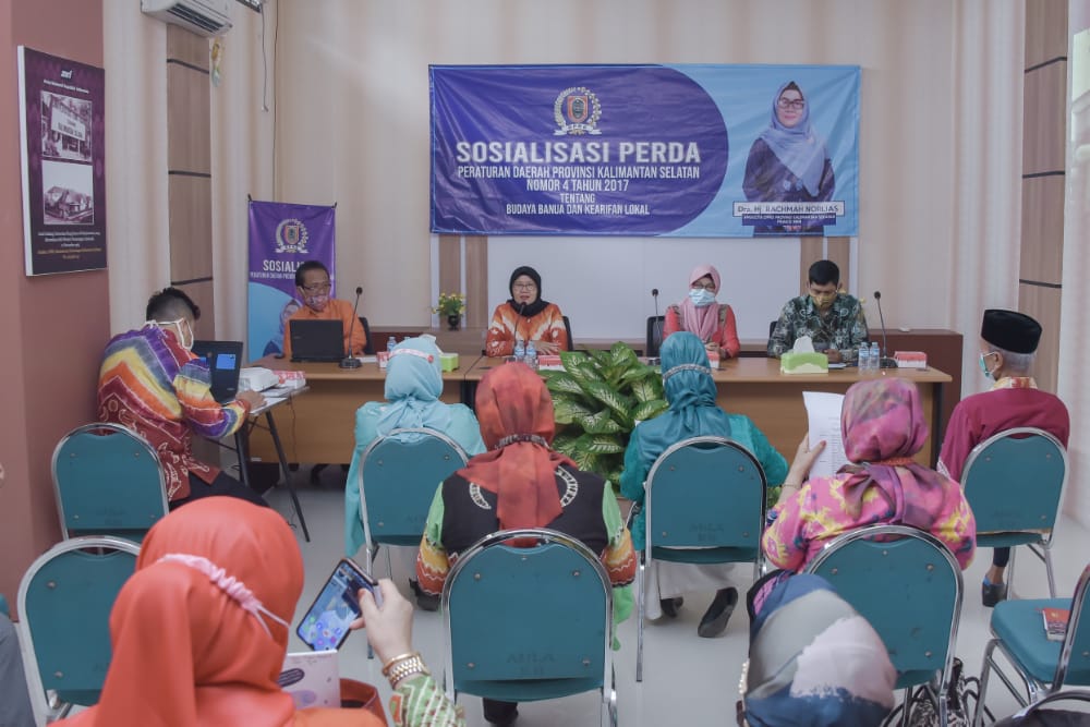 Sosialisasi Perda tersebut bertempat di Depo Arsip Dinas Perpustakaan dan Arsip Kota Banjarmasin menghadirkan narasumber M Kuzaimi dan Pencipta Lagu berbahasa Banjar Hariadi, Kamis (25/2/2021).