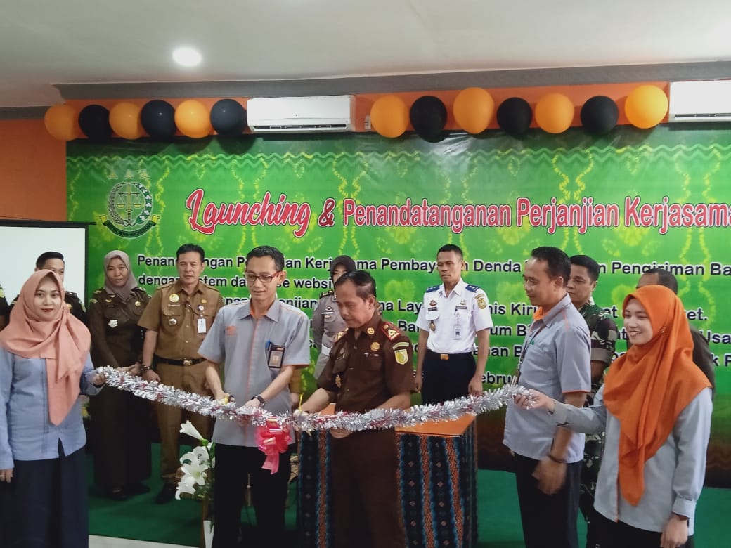 Acara penandatangan kerjasama ditandai dengan penguntingan pita oleh Kepala Kejaksaan Negeri Banjarmasin Taufik Satia Diputra dengan didamping Kepala Kantor Pos Banjarmasin Lili Wahyu Saptono disaksikan dari unsur forum kordinasi pimpinan daerah Banjarmasin, serta pimpinan Regional 9 Pos.