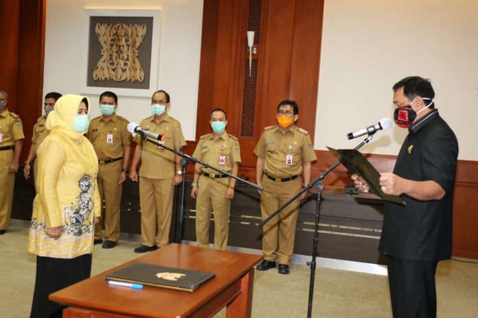 Hadir dalam pelantikan Plh Sekdaprov Kalsel Roy Rizali dan sejumlah kepala SKPD di lingkup Pemprov Kalsel. Pelantikan berjalan sederhana dengan menerapkan protokol kesehatan.