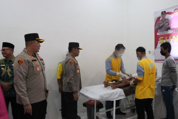 Usai penandatanganan prasasti peresmian klinik dan gunting pita oleh Kapolda Kalsel dan Ibu Ketua Bhayangkari Daerah Kalsel Ny. Dewwy Andi Rian bersama Forkopimda Kotabaru, langsung meninjau pelaksanaan Sunatan massal yang berlangsung di dalam klinik Bhayangkara Wicaksana Laghawa tersebut. Kamis kemarin
