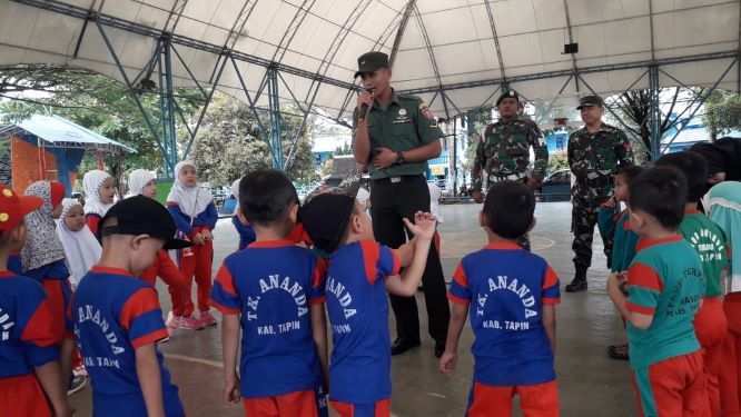 “Seperti saat ini, dengan didampingi guru-gurunya, melalui pengenalan profesi tentara, kita tanamkan kedalam sikap dan mental serta cara berfikir anak-anak tentang nilai kerapihan, kedisiplinan, kebersamaan, dan loyalitas”ucapbya