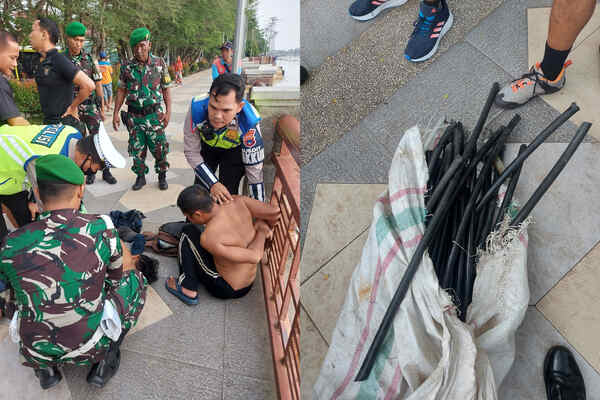 Bahkan anggota TNI yang kebetuilan juga berada disana, ikut melakukan pengejaran dan pengamanan terduga pelaku, hingga salah seorang pelaku sempat bercebur ke sungai sekitar siring, namun ketangkap sehingga diamankan.