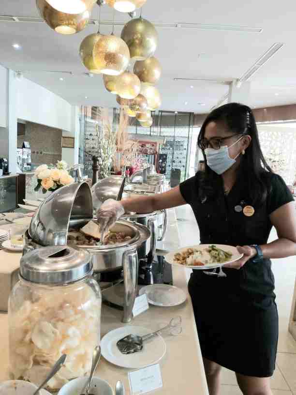 Restoran juga hanya melayani room service. Seiring New Normal dan okupansi mulai bertambah, saat ini restoran sudah dibuka dengan pengaturan jarak dan jumlah tamu.
