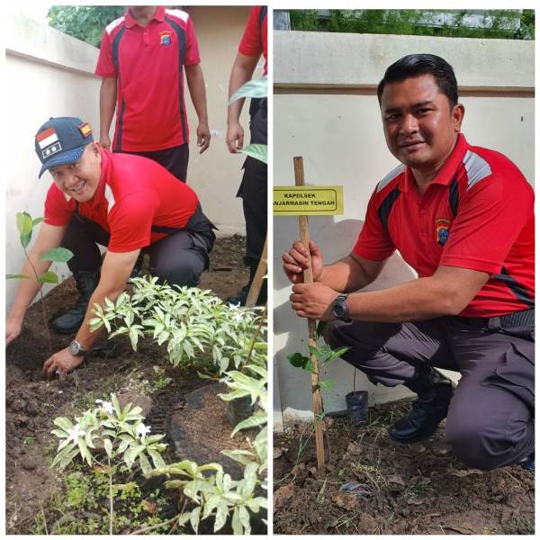 Kapolsek Bjm Tengah dan Perwira Polsek lainnya pun semangat melaksanakan kegiatan tersebut dalam rangka Program Kapolri Penanaman Pohon. Karena hal itu guna mendukung penghijauan dan Polresta Banjarmasin Peduli penghijauan.