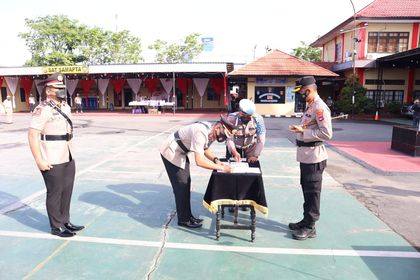 Banjarmasin, BARITO- Kapolresta Banjarmasin Kombes Pol Sabana Atmojo Martosumito, pimpin Apel Serah terima jabatan (Sertijab) dan pengambilan sumpah jabatan Kasat Reskrim Polresta Banjarmasin. Mengambil tempat di halaman apel Mapolresta Banjarmasin berlangsung hikmat dan sederhana, Selasa (21/6/2022) pagi.