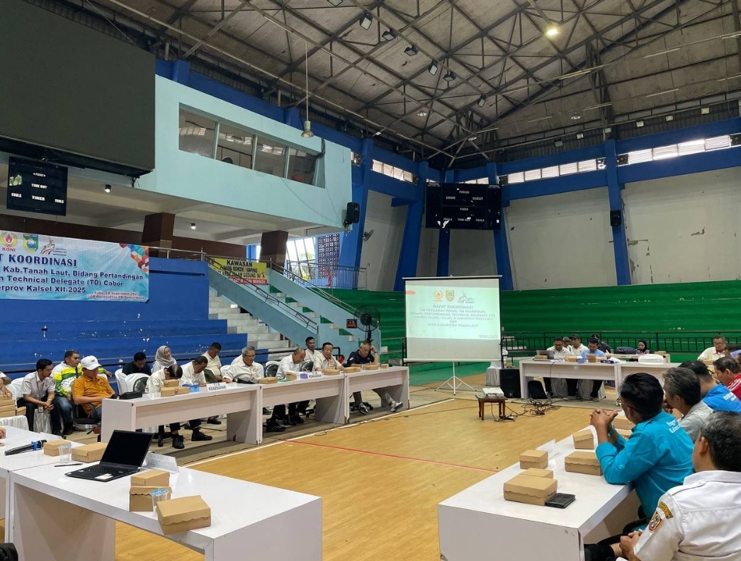 Banjarmasin, BARITOPOST.CO.ID – Komite Olahraga Nasional Indonesia (KONI) melakukan rapat koordinasi bersama KONI Tanah Laut (Tala) dan tim technical delegate, Rabu (10/09/25) siang di GOR Hasanuddin HM Banjarmasin. Pertemuan tersebut sebagai pemantapan persiapan pelaksanaan Pekan Olahraga Porvinsi (Porpro) XII 2025 di Tala.