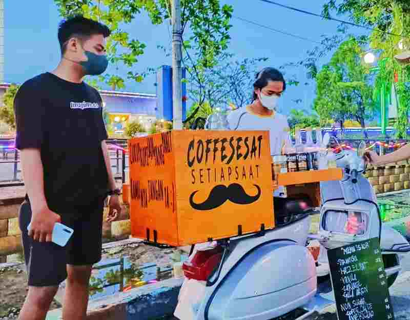 “Alhamdulillah, baru saya yang jualan seperti ini dan banyak pecinta kopi yang beli,” ujar pemuda yang baru lulus SMA itu, saat ditemui di kawasan Taman Siring Laut, akhir pekan lalu.
