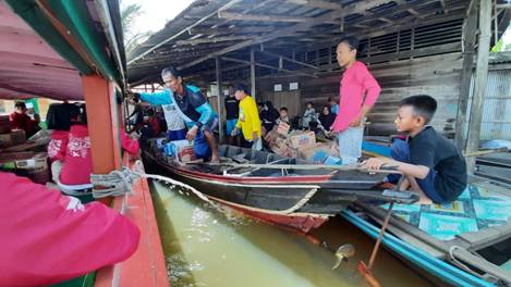 Keesokan harinya, relawan SBBE kembali beraksi. Kali ini jalur yang diambil adalah jalur sungai dengan menggunakan armada kelotok menuju kawasan Kabupaten Banjar, atau tepatnya di Kecamatan Sungai Tabuk (populasi hampir 60 ribu jiwa), dengan menyisir para korban di sepanjang pesisir sungai Lok Baintan, Sungai Pinang, Sungai Bakung, Sungai Tandipah, Lok Buntar, Pamakuan hingga Pembataan. Dan lagi-lagi sesampainya di kawasan tersebut, para korban terlihat hanya satu dua orang saja menggunakan masker, dimana masing-masing menggunakan jukung (perahu tanpa motor), langsung menyerbu kelotok yang mengangkut bantuan kemanusiaan tersebut. Alasan mereka rebutan, tak lain karena merasa bantuan tak pernah sampai ke tangan mereka oleh petugas posko yang biasa dititipkan sembako dan bantuan lainnya. Meski dihadapkan kondisi demikian, relawan SBBE tetap berlaku adil dengan tujuan agar semuanya bisa mendapatkan bahan makanan, pakaian, dan obat-obatan serta perlengkapan bayi.
