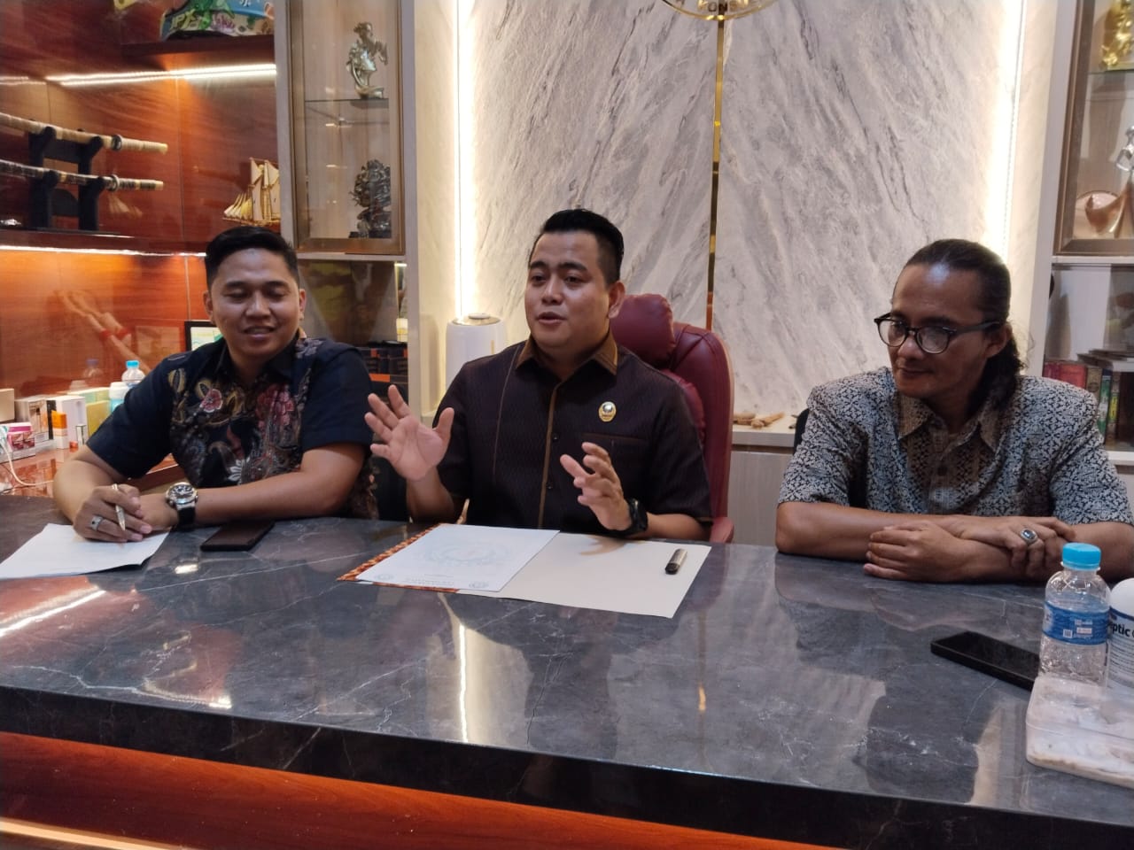 UANG DAMAI - Angga D Saputra SHMH selaku Kuasa Hukum korban persalinan bayi tewas Kepala putus dari Malpraktik petugas medis RSUD Ulin . Didampingi Ketua Tim Ahmad Ryan Firmansyah dan anggotanya Tanjung SH menolak uang damai tawaran dari RS milik Pemrprov Kalsel tersebut, Kamis (23/5/2024). (foto:sum/brt)