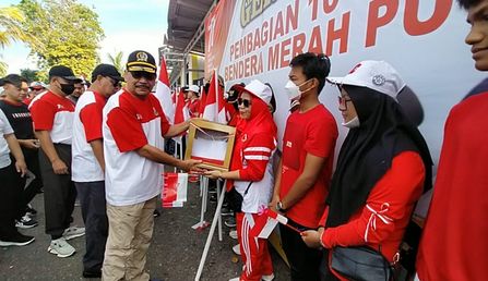Ya memang, sebelum melepas peserta jalan santai, Gubernur didampingi Ketua DPRD Kalsel H Supian HK menyerahkan secara resmi gerakan pembagian 10 juta bendera sang Saka Merah Putih ke perwakilan masyarakat.
