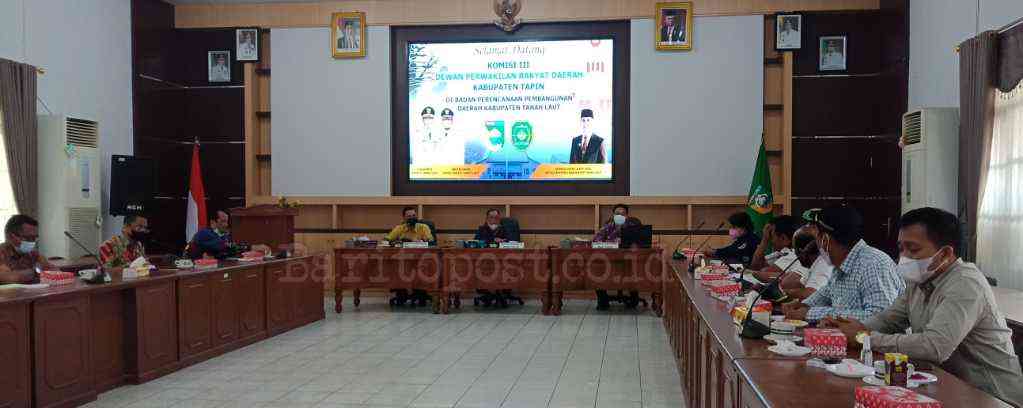 Pelaihari, BARITOPOST.CO.ID– Beberapa program dari Pemerintah Daerah Kabupaten Tanah Laut menjadi hal yang menarik bagi DPRD Tapin khususnya komisi 3. Jum’at, (29/12/21) personil komisi 3 DPRD Tapin yang dipimpin H.Rajudin Noor dan dari pihak Bappeda Kabupaten Tapin, dijamu kepala Bappeda Tanah Laut Andreas Evony beserta jajaran diaula Pencerahan kantor Bappeda.