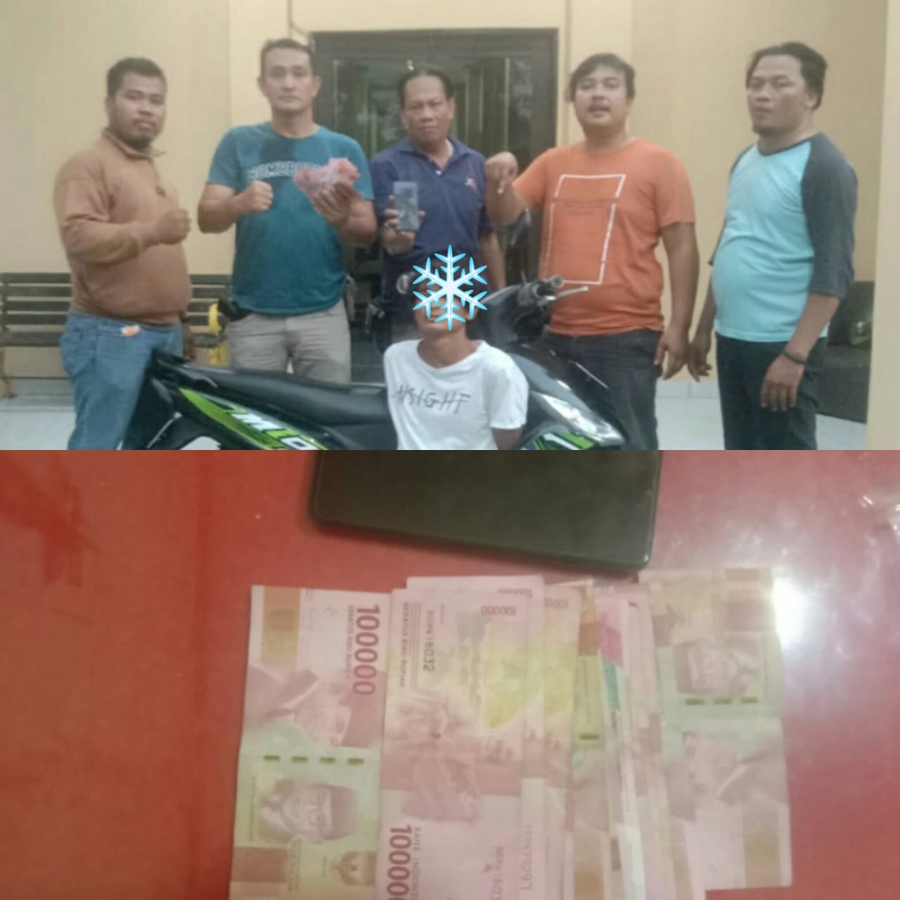 P”Kemudian dilakukan penggeledahan di rumah pelaku dan kami temukan uang tunai sebesar Rp 1,6Juta. Termasuk barang bukti ponsel merk samsung dan sepeda motor Yamaha Mio J warna hitam les hijau dengan Nopol DA 6350 KAD yang digunakan untuk melakukan penjambretan,”sebut Kanit.