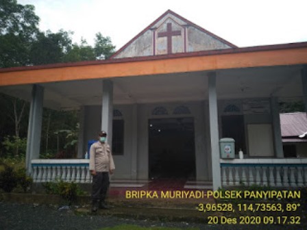 Anggota Polsek Tambang Ulang Polres Tanah Laut Bripka Muriyadi melaksanakan giat pengamanan tempat Ibadah Gereja Ds.Batu Mulya yang berada di wilkum Polsek Panyipatan Polres Tanah laut Polda Kalimantan selatan. Minggu (20/12/2020)