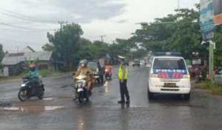Personel unit lantas Polsek Banjarbaru Barat turun kejalan darah rawan laka lantas setelah diguyur hujan di jalan jurusan pelaihari Liang Anggang, dimana jalan lurus dan sepi sehingga diperlukan kehadiran unit lantas untuk memantau dan monitoring agar para pengguna jalan baik roda dua atau roda empat berhati-hati dalam mengendarai kendaraannya.