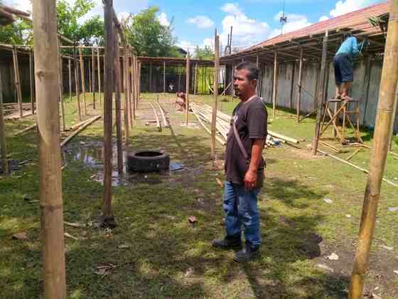 Benar saja, berdasarkan pantauan di lapangan, tanah kosong yang bersebelahan dengan kantor Lurah Kuripan itu masih sedang dalam tahap pengerjaan. ada sekitar 5 pekerja yang fokus memasang tiang dan atap kios sementara tersebut.