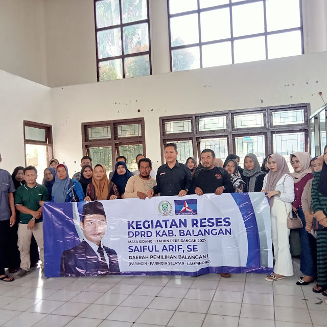 Paringin, BARITOPOST.CO.ID – Anggota Komisi I DPRD Balangan, Saiful Arif, melaksanakan kegiatan reses masa sidang dua tahun 2025, yang sekaligus dirangkaikan dengan silaturahmi bersama masyarakat Paringin Kota. Kegiatan ini berlangsung di ruang aula Gedung Juang, dan menjadi kesempatan bagi warga untuk menyampaikan aspirasi langsung kepada wakil rakyat Saiful Arif yang berasal dari Partai Demokrat dan mewakili daerah pemilihan Paringin, Paringin Selatan, dan Lampihong, menegaskan komitmennya dalam memperjuangkan kebutuhan masyarakat setempat.