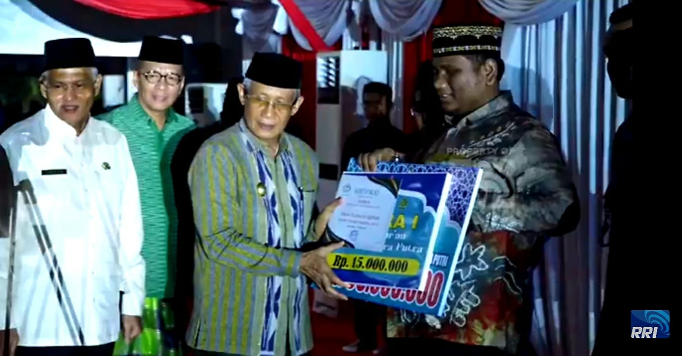 Piala dan uang pembinaan diserahkan langsung oleh Wakil Gubernur Sulawesi Tenggara, Lukman Abunawas.