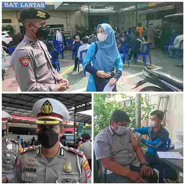 Bertempat di halaman Satlantas sedikitnya 100 warga pun ikut divaksin baik pertama kali maupun sudah pernah atau akan booster alias ketiga
