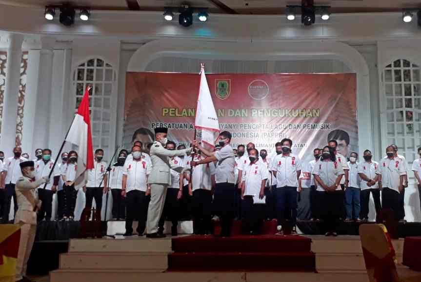 Banjarmasin, BARITO – Pelantikan dan pengukuhan pengurus DPD Persatuan Artis Penyanyi, Pencipta Lagu dan Pemusik Indonesia (PAPPRI) Kalsel periode 2020-2025, digelar Rumah Makan Lima Rasa, Banjarmasin, Rabu (10/3/2021).