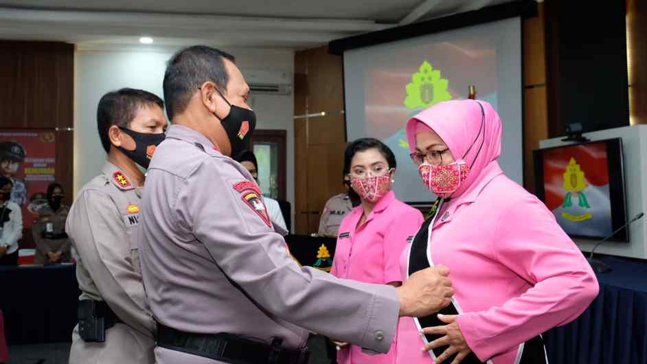 Polisi Wanita (Polwan) yang baru menggantikan Ny Ully Nico Afinta yang menjabat Ibu Asuh Polwan Polda Jatim. Hadir dalam pengukuhan Kapolda Jatim, Irjen Pol Nico Afinta, spejabat lama Kapolda Kalsel, dan Ny Ully Nico Afinta