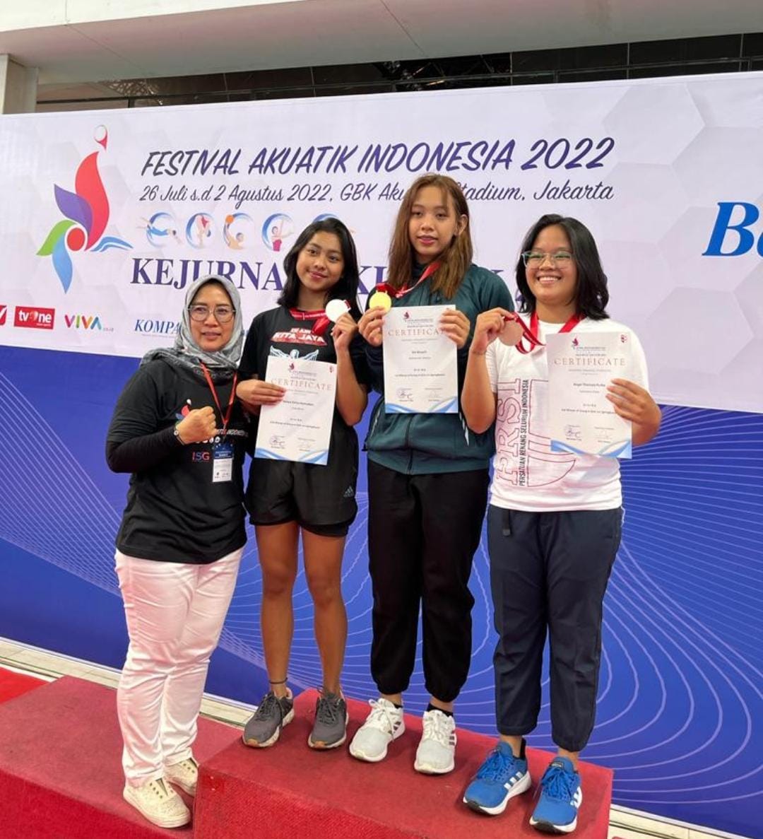 Tak hanya emas dan perak, tim loncat indah Kalsel juga mengantongi medali perunggu. Ketiganya lagi-lagi diperoleh Siti Kinasih di nomor terbuka papan 1 meter dan tiga meter puteri serta Muhammad Akbar Tawakkal Lee yang mendapat perunggu di nomo KUA papan 1 meter putera.