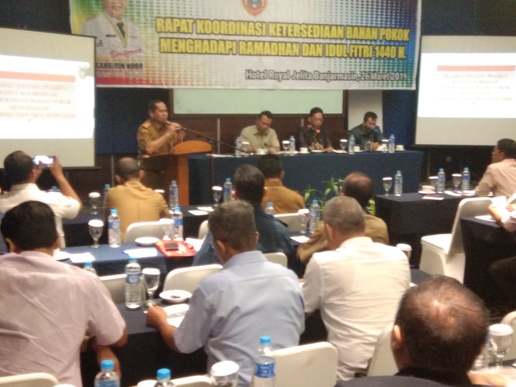 rapat koordinasi ketersediaan bahan pokok menghadapi ramadan dan idul fitri 1440 hijriah, Selasa (26/3) di Banjarmasin.