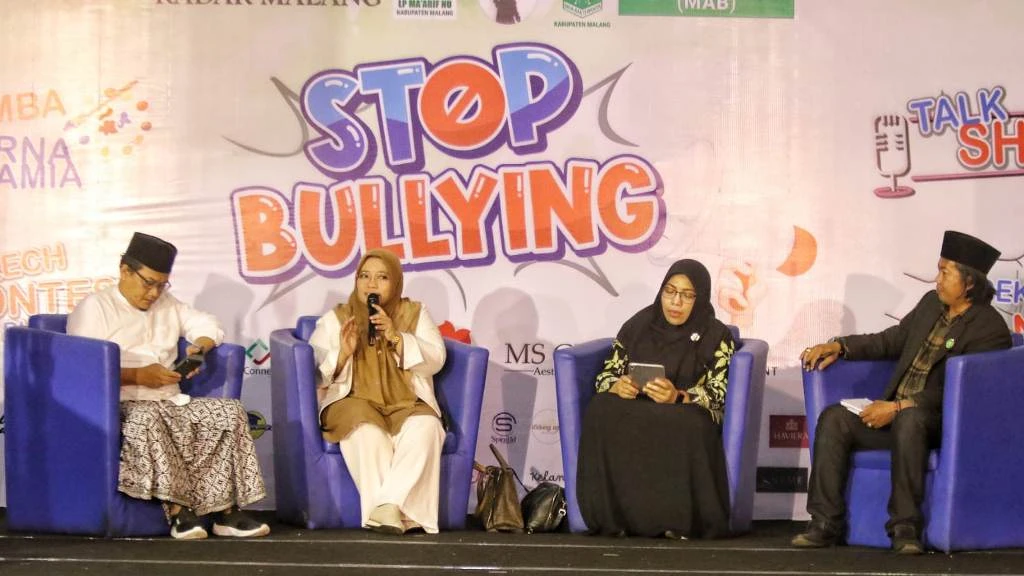 Narasumber Talk Show dan Deklarasi, Ma’arif Against Bullying, Wakil Ketua Komisi E DPRD Kabupaten Malang, Hikmah Bafaqih, mengapresiasi langkah LP Ma’arif NU yang bergerak bersama secara pentahelix untuk mencegah bullying di Kabupaten Malang.