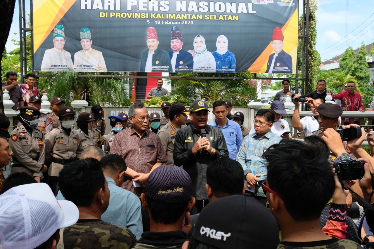 Kedatangan puluhan massa itu diterima Ketua DPRD Kalsel H Supian HK didampingi Sekretaris Komisi I DPRD Kalsel H Suripno Sumas, Kamis (23/1/2020).