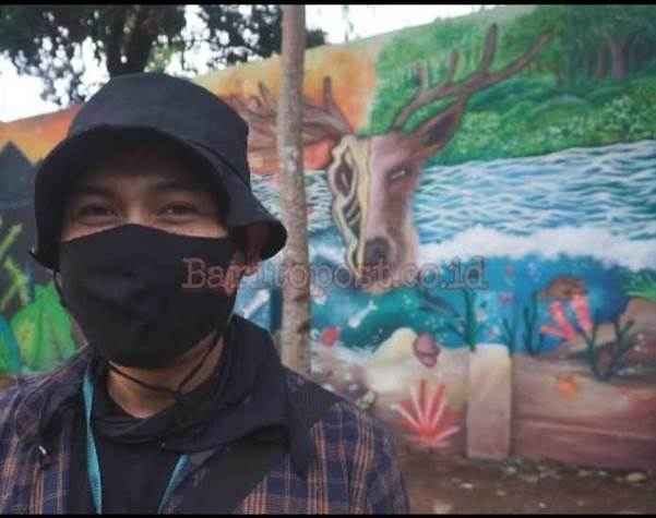 Pelaihari,BARITO – Siapa yang menyangka, Kopral Andrian Yustianto salah seorang anggota TNI tugas belajar pada Akper Kesdam VI Tanjung Pura yang juga bertugas di Batalyon Infanteri Yonif 611 Awang Long kota Samarinda Kaltim, sebagai salah seorang peserta lomba lukis pada tembok SMK Negeri 1 Pelaihari akhirnya mampu menggeser dari 17 peserta lainnya dalam lomba lukis grafiti di tembok SMK Negeri 1 Pelaihari Jalan A.Sukri, dalam rangkaian memperingati Hari Peduli Sampah Nasional (HPSM) tahun 2022 yang dimotori oleh Dinas Perumahan Rakyat Kawasan Permukiman dan Lingkungan Hidup (DPRKPLH) Kabupaten Tanah Laut Kalsel, Minggu, (20/02/22). Ia pun membawa pulang uang hadiah sebesar Rp 3 juta rupiah.