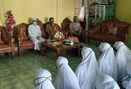 Bantuan masker 1000 lembar yang diserahkan lurah dan Bhabinkmatibmas secara simbolis ke Pimpinan Ponpes Al falah Putri K.H Mukhlis Kaspul anwar serta perwakilan santriwati ponpes Alfalah Putri.