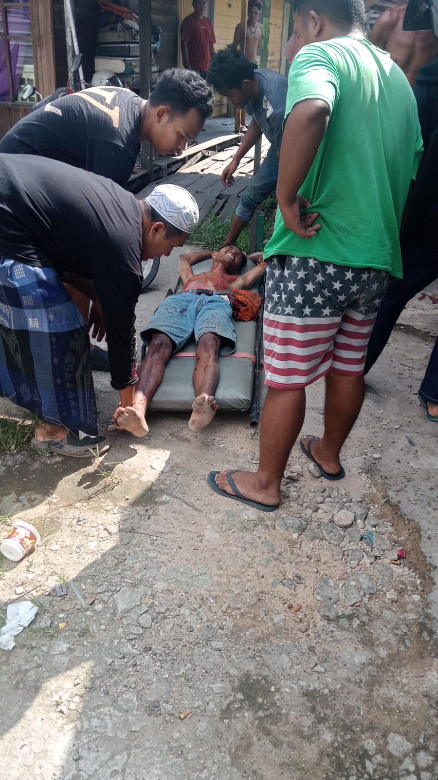 Korban yang dalam kondisi berlumuran darah itu masih bisa berjalan kaki sampai depan Komplek Airmantan hingga kemudian terjatuh.