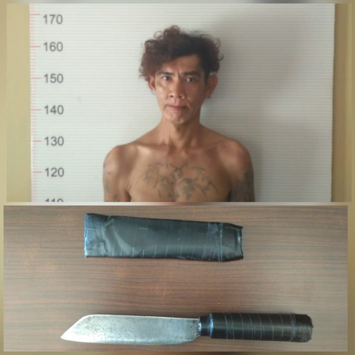 Kemudian saat melintas di seberang Gang Sriwijaya, Jalan Pekapuran B Laut Kelurahan Pekapuran Laut Kecamatan Banjarmasin Tengah, sambil jalan kaki, pemilik sajam ini menegur dua orang yang sedang makan di warung.