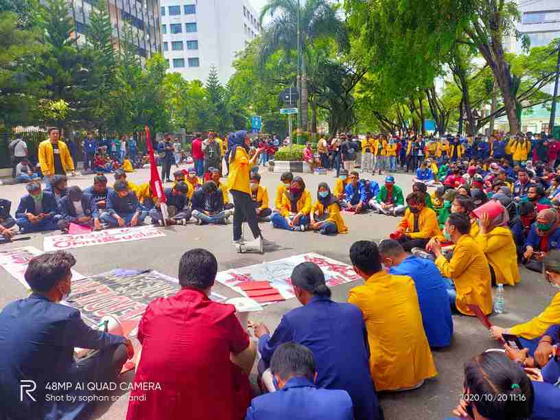 Aksi unjuk rasa mahasiswa kali ini bertepatan dengan momen satu tahun pemerintahan Presiden Joko Widodo dan Wakil Presiden Ma’ruf Amin. Karena itu ratusan mahasiswa yang turun ke jalan kali ini selain memberi “Raport Merah” bagi pemerintah, sekaligus juga tetap pada tuntutan semula menolak Undang-undang (UU) Omnibus Law Cipta Kerja.