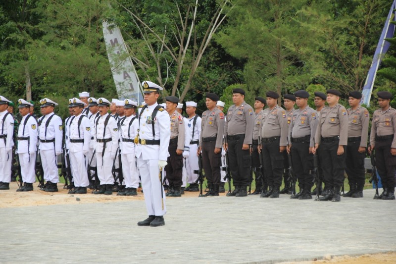 Bertindak sebagai inspektur upacara Komandan Lanal Kotabaru, Letkol Laut (E)Joko Ardianto, S. TAPI., M. Tr. Hanya, pjurit Lanal Kotabaru melaksanakan upacara di Bertindak sebagai Komandan Upacara Pasops Lanal Kotabaru Kapten Laut (P) Priyono.