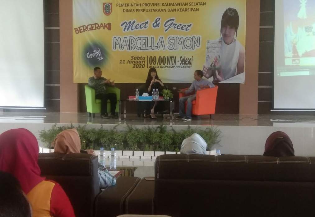Banjarmasin, BARITO – Aktris FTV sekaligus penulis buku anak, Marcella Simon datang ke Banjarmasin untuk berbagi pengalaman dan sharing tentang dunia literasi kepada puluhan mahasiswa dari sejumlah perguruan tinggi negeri danswasta.
