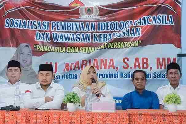 Rantau, BARITO – Wakil Ketua DPRD Provinsi Kalimantan Selatan Hj Mariana, S.Ab, MM mengingatkan agar masyarakat mengetahui betapa pentingnya Ideologi Pancasila bagi kehidupan berbangsa dan bernegara.