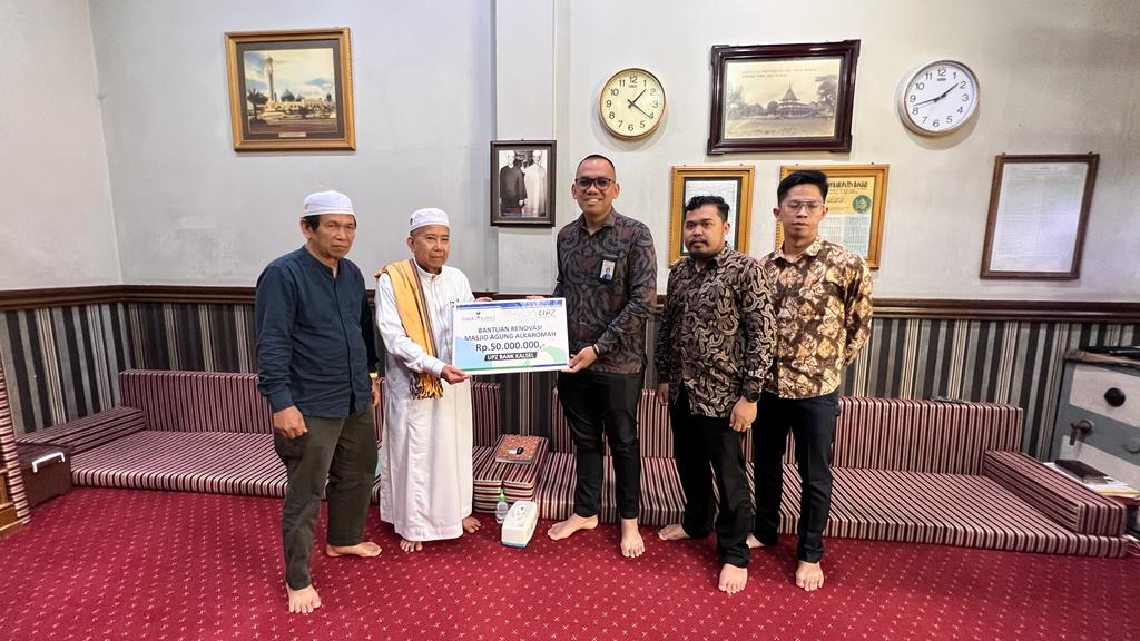 Bantuan diserahkan Kepala KCPS Martapura Angga Ginanjar Prasetya kepada Nadzir Masjid Agung Al-Karomah Martapura Hasanudin Badruddin didampingi Bendahara Gusti Abdurrachman di ruang masjid.