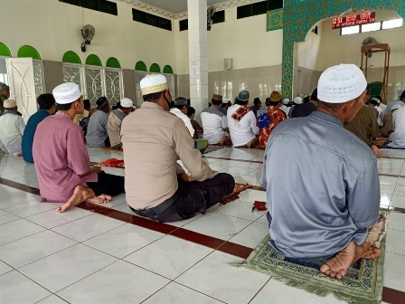Bhabinkamtibmas Polsek Karang Bintang Polda Kalsel Bripka Rusni melaksanakan shalat Jumat bersama warga binaan di Masjid Miftahul Jannah Desa Karang Bintang Kecamatan Karang Bintang Kabupaten Tanah Bumbu, Jumat (18/09/2020).