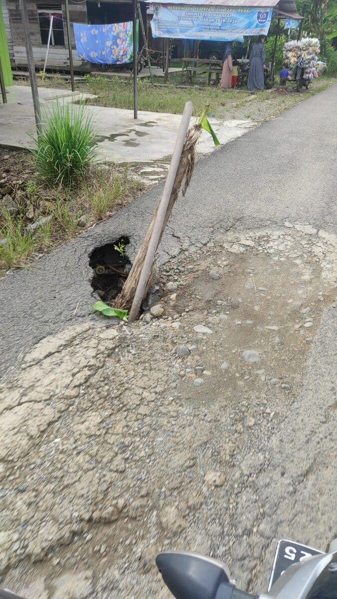 “Kami memohon untuk secepatnya dilakukan perbaikan mengingat ketika air sungai meluap maka jalan di desa kami ikut terkena banjir sehingga jalan pun jadi rusak parah, saat ini kami hanya mampu memperbaiki sedikit-sedikit jalan yang berlobang,” tutupnya.