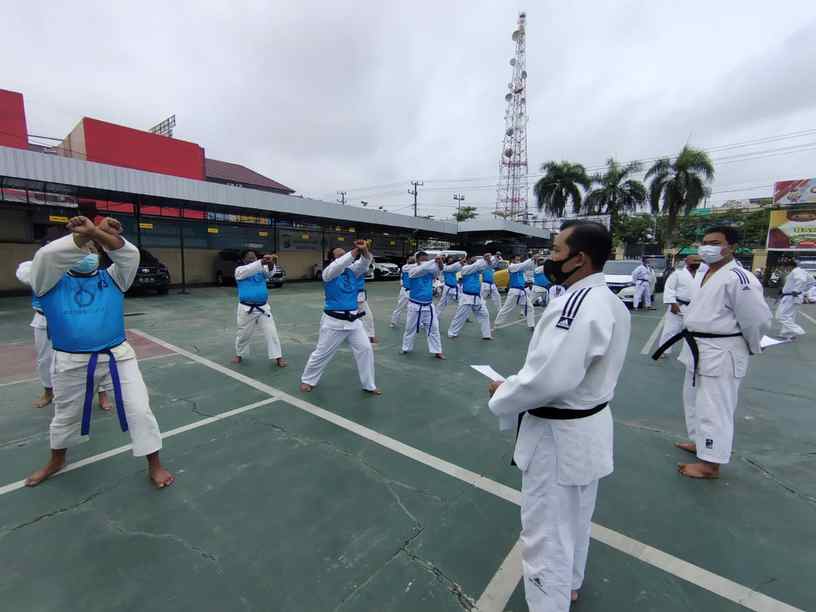 Banjarmasin, BARITO – Bela diri bagi personil Polri adalah wajib dimiliki, kemampuan ini sudah diajarkan pada saat menempuh Pendidikan Kepolisian. Pagi itu, sebanyak 86 karateka Polresta Banjarmasin mengikuti ujian bela diri di Halaman Apel Mapolresta, Kamis (16/9/2021).